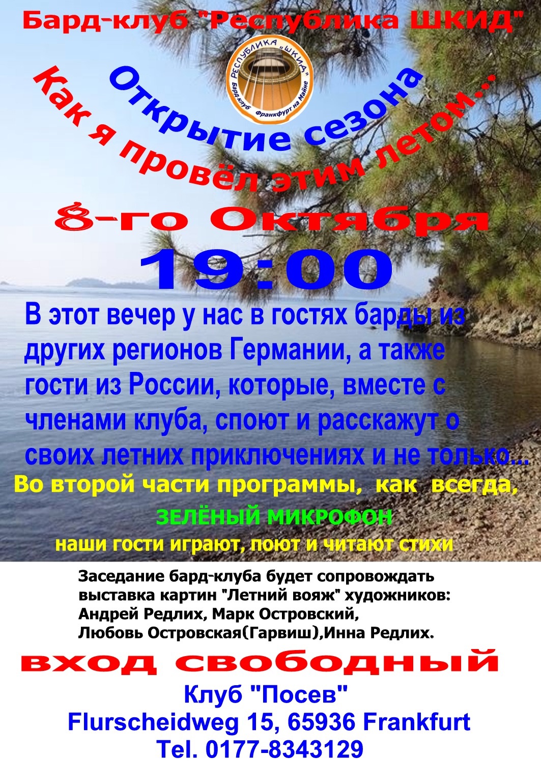 Приходите вовремя, количество мест ограничено! Заказывать места 0177 - 77 988 12 В пользу музыканта собираем пожертвование в размере 5 евро.