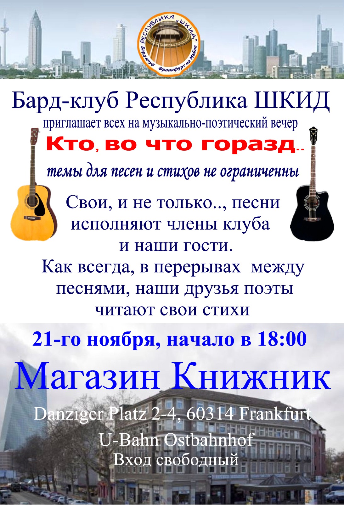 с Александром Кабановым … Вечер организован ассоциацией « Эмигрантской лиры » (Александр Мельник). В Российском центре науки и культуры (РЦНК) состоится встреча с известным русским поэтом Александром Кабановым (Украина, Киев). Поэт представит свои последние книги, расскажет о своём жизненном пути и, конечно же, почитает свои замечательные стихи.