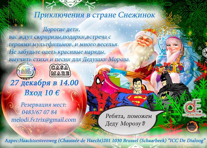 Дорогие друзья! Приглашаем вас на Новогодний праздник для детей! Вас ждут увлекательные приключения в стране Снежинок, развлечения,подарки, встреча с героями мультфильмов, сюрпризы и много веселья. Спешите зарезервировать места для ваших детишек. Не забудьте одеть красивые наряды,выучить стихи и песни для Дедушки Мороза. Внимание родителям не нужно платить за вход. Ждем всех♡