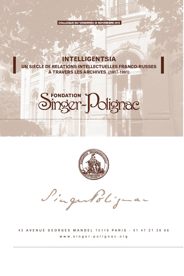 RC Expo. Intelligentsia. Entre France et Russie. Archives inédites du XXe siècle. 2012-11-28 Commissaires : Véronique Jobert et Lorraine de Meaux