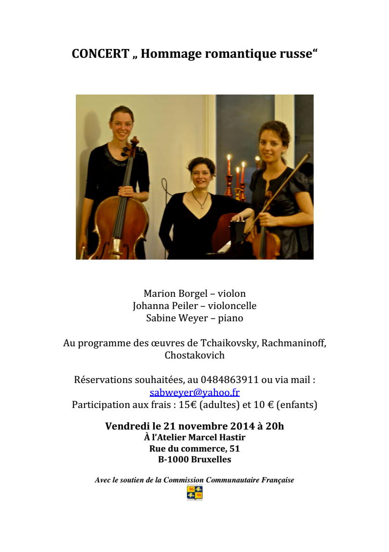 Nous aimons annoncer les concerts parisiens de Natacha ainsi bientôt son Récital Fusion puis Sainte-Cécile. Nos amis liégeois nous offrent une soirée russe au musée du Fort à Boncelles, tandis que Halinka nous revient à Bruxelles avec son expo « Détails pierre - bronze ».