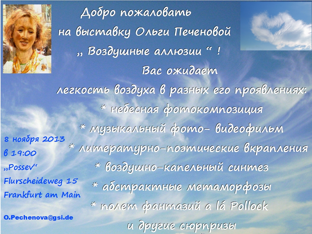 Просим резервировать места по телефону 0177 779 88 12 Стоимость входа 5,- (расходы на транспорт) Инфо : klub-possev at t-online dot de