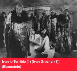 de Sergei M. Eisenstein, URSS 1944 / Zwart-wit / 99' Nikolai Cherkasov, Lyudmila Tselikovskaya, Serafima Birman / NB / ST: FR / 98' Eisensteins finale en gigantische historische trilogie waarvan slechts twee delen voltooid geraakten. In de Tsaar die de Russische staat eenmaakte, hebben velen een portret van Stalin herkent die het tweede deel als anti-historisch verbood. Een tragedie over macht, met Shakespeariaanse samenzweringen en prachtige muziek van Prokofiev.