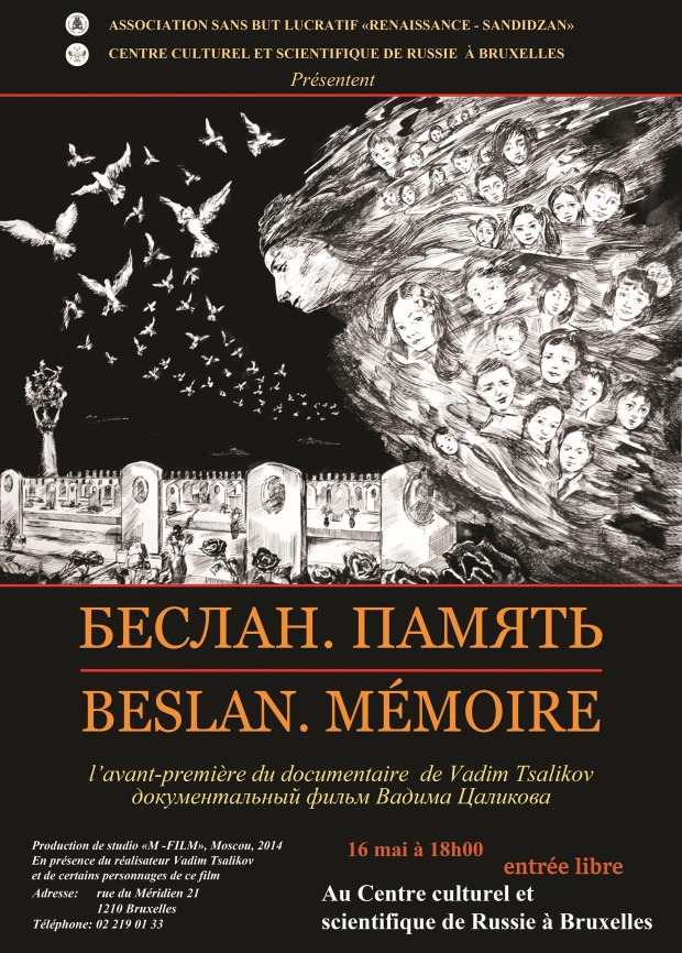 Association sans but lucratif « Renaissance-Sandidzan » Премьера документального фильма В. Цаликова « Беслан. Память ». Avant-première du documentaire de Vadim Tsalikov « Beslan. Mémoire ». Production du studio « M-Film », Moscou 2014. En présence du réalisateur et de certains personnages du film.