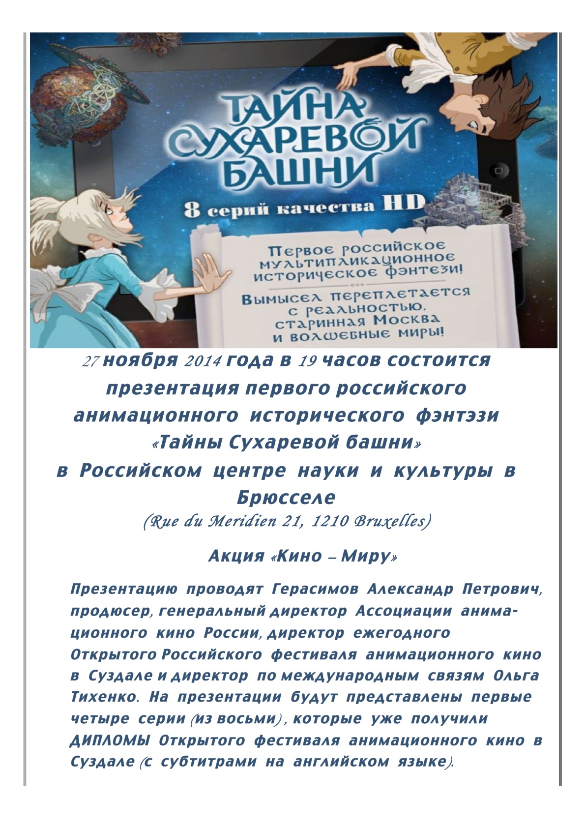 Дорогие друзья! Предлагаем Вам фильм « Русский Корпус » Свидетельства. Фильм в России еще не вышел в открытый показ. Львович Ордоевский-Танаевский и оператор сын Федор Михалович будут присутствовать на просмотре! Документальный фильм о Русском Корпусе, войнском соединении, созданным русской белой эмиграцией в окупированной Югославией (1941-1945) состоит из шести серий. Мы, посевские устроители, просмотрели все серии на одном дыхании. Верно сказано в рецензии Кирилла Александрова : « Во время тяжелого просмотра порой приходила в голову неприятная мысль о том, что зрители вот-вот устанут от рассказов и разговоров на экране. Перестанут воспринимать. Любой собеседник утомляет. А здесь собеседников оказалось более десятка. Однако почти сто человек смотрели шестичасовой фильм в гробовом молчании »Вот что пишут авторы на сайте посвященному этому фильму : « Дорогие друзья! Уважаемые кинозрители!