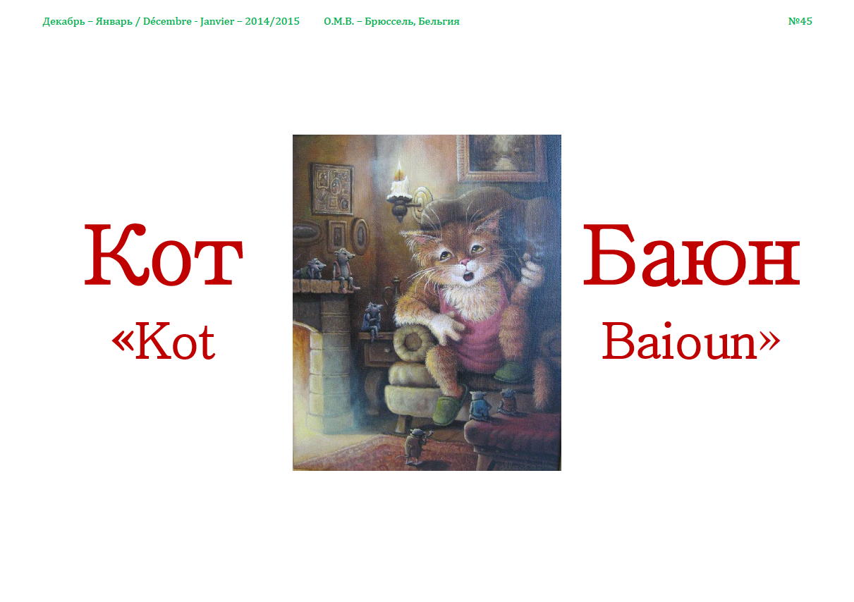 Nous vous présentons nos meilleurs vœux de bonne et heureuse année 2015, qu'elle vous apporte non seulement santé mais aussi sagesse et apaisement des tensions internationales. Tout au long de l'année nous avons glané les quelque 541 activités qui se sont présentées dans la communauté. Ainsi des soirées de réveillon sont encore proposées à Bazel, Hasselt et Wetteren pour le tout dernier jour de 2014. Le décalage des calendriers civil et religieux subsiste et la coutume nous engage toujours à célébrer les fêtes de la Nativité et du Nouvel An ancien style. A cet effet, nous remercions sincèrement le J&V Magazine d'y avoir songé tout en découvrant la communauté russe de Bruxelles. Ensuite, après un saut au club Possev de Francfort, « Doumka » nous invite à fêter la « Malanka », vieux jour de l’an ukrainien, à Floreffe. Alors que le « Triomphe de l'Art » ayant pris ses marques au Centre culturel de la Fédération de Russie, y prépare un concert international de musique slave, viennent les traditionnels bal russe et soirée spéciale blinis des Vitiaz, qui proposent déjà de prendre réservation. Au plaisir de vous y rencontrer nombreux.