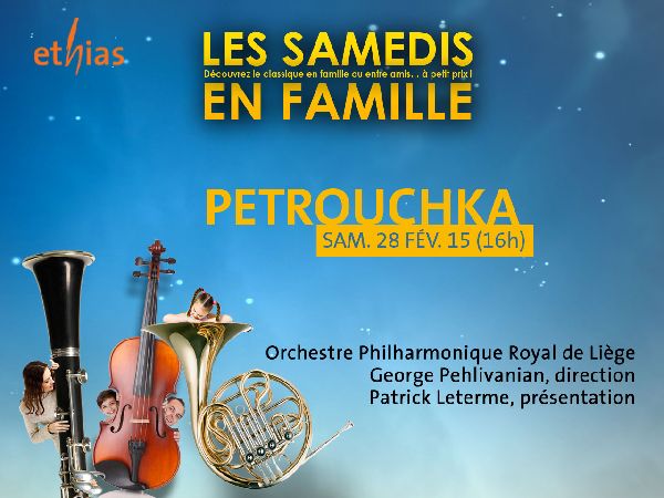 Iveta Apkalna, orgue, Orchestre Philharmonique Royal de Liège, George Pehlivanian, direction Après un mémorable festival Rachmaninov en février 2013, George Pehlivanian ramène à la vie Petrouchka, la plus célèbre marionnette du folklore russe, mise en musique par Stravinsky en 1911 pour les Ballets russes de Diaghilev. Proposée pour la première fois à Liège, la monumentale Troisième Symphonie de Khatchaturian - avec orgue – a été écrite pour commémorer les 30 ans de la Révolution russe de 1917.