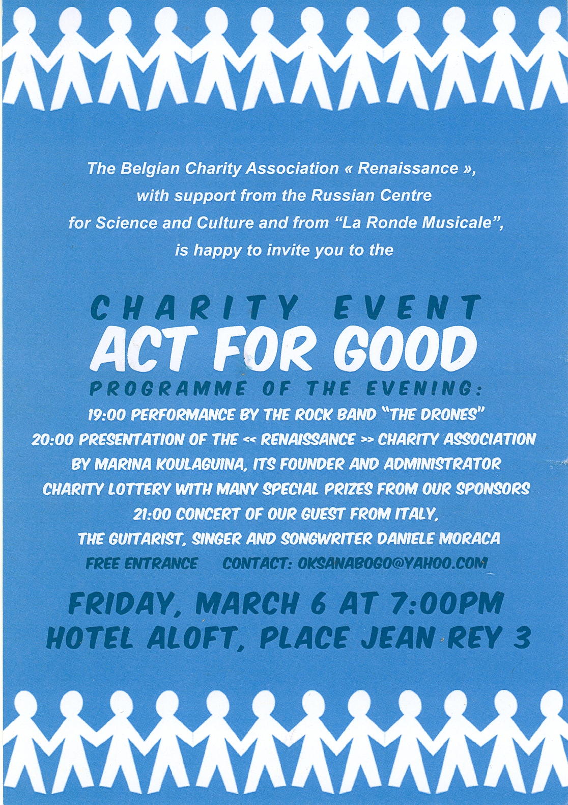 • Renseignements par téléphone : 0496 66 29 89 après 18 heures ou courriel : slavianka.art at hotmail dot com