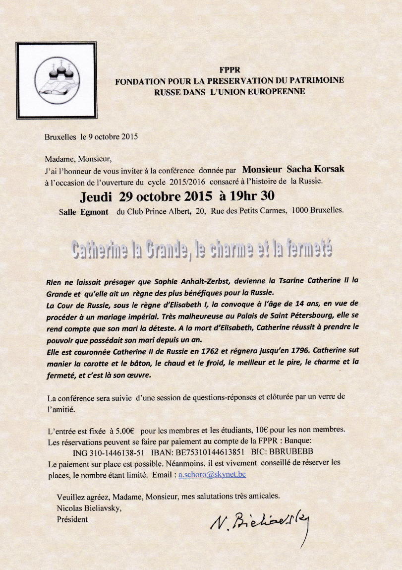 J’ai l’honneur de vous inviter à la conférence d’ouverture du cycle 2015/2016 consacrés à l’histoire de la Russie.