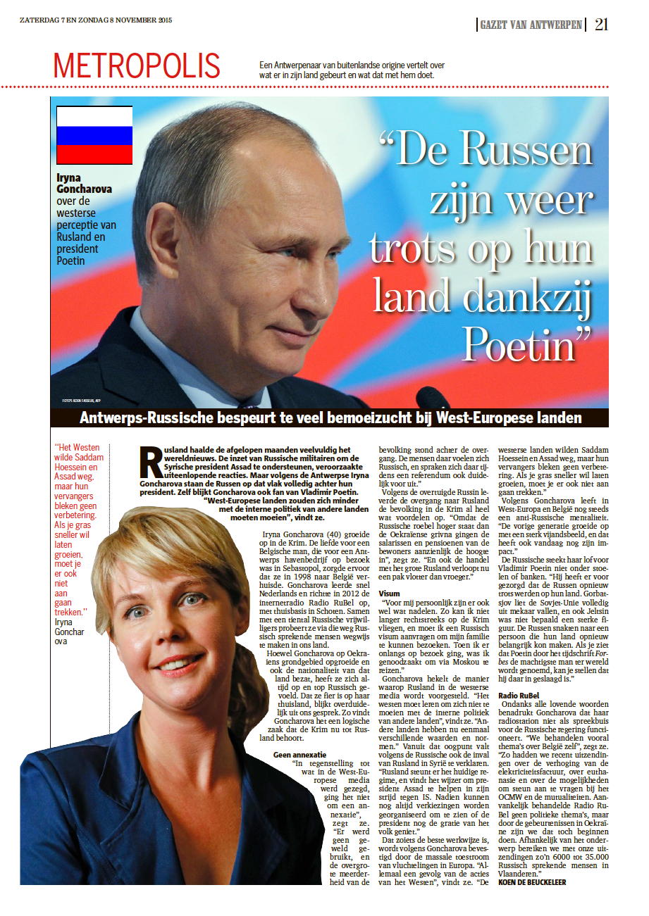 AirBe Harmonie организует Радуга талантов детское творчество. Азербайджан, Беларусь, Грузия, Молдова, Россия, Украина. В рамках программы « Монс — Культурная Столица Европы 2015 г. » 6-7-8 ноября 2015, в Монсе будет проведен V Мультикультурный Фестиваль « Farandole des Cultures de l’Est ». Расписание : 6 ноября в 20:00 — молдавская вечеринка. Вход свободный. 7 ноября в 11:00 — выставка художников и концерт белорусcкого ансамбля «Кукушечка». 7 ноября в 14:00 — торжественное открытие выставки « Балет и Город » В. Чикина, Е. Суворовой и Е. Евтухова в музыкальном сопровождении Золотого Плëса. Россия на этом не перестает нас удивлять. Из Москвы специально на наш праздник приезжают известная в России финалистка проекта Первого Канала « Голос. Дети » Саида Мухаметзинова и группа « Шестое Чувство », финалисты телепроекта « Фактор А » Аллы Пугачёвой, транслируемого телеканалом « Россия ». Они выступают 7 ноября в 17:30. Вход свободный.