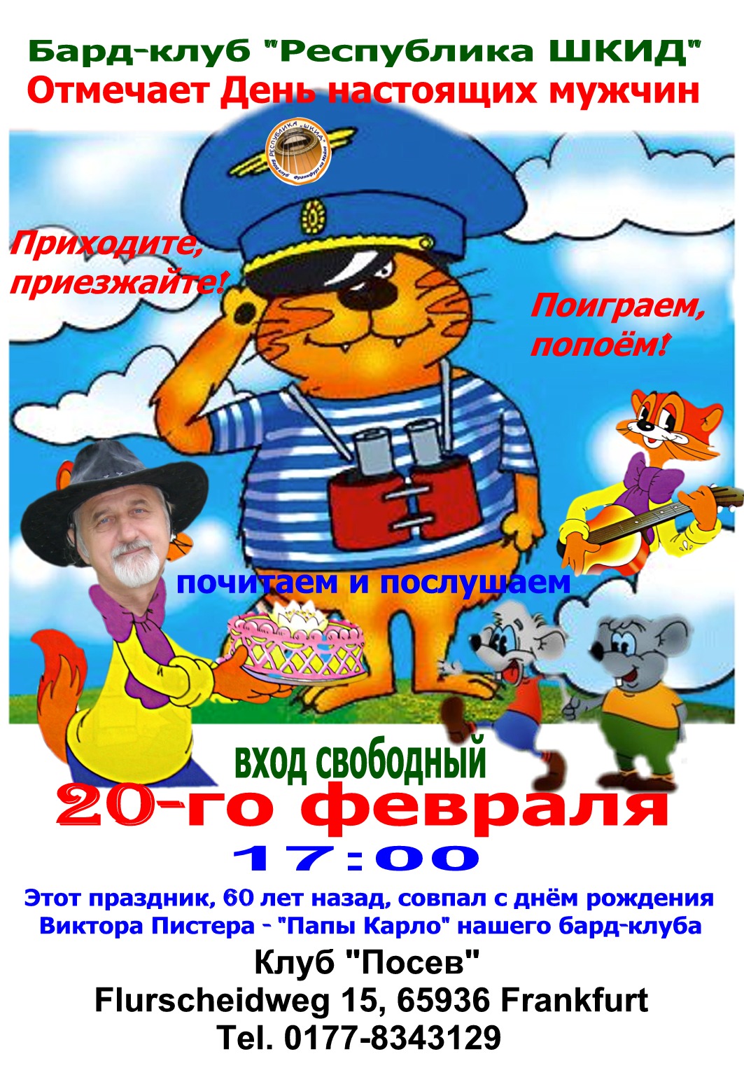 | 12/2 | Кастинг и открытый урок для кино-теле-медиа-академии | Francfort | | 12/2 | Музыкальные Метаморфозы. Métamorphoses musicales | Bruxelles | | 13,20,27/2 | Cours de prise de parole en public | Saint-Josse | | 13/2 | La poésie d'amour entre la Belgique, la Russie et la Chine | Liège | | 13/2 | День Валентина для взрослых | Francfort | | 16/2 | Вечер, посвящённый « Дню настоящих мужчин » | Francfort | | 18,19,20/2 | Boek voorstelling : « Gelukkig in de Sovjet-Unie » | Zwevegem/Kortrijk/Antwerpen | | 19/2 | 47ème bal russe Vitiaz. Russisch bal Vitiaz. Русский бал Витязей | Etterbeek | | 19/2 | Chants et danses de la mort de Moussorgski | Bruxelles | | 19/2 | Het russische Verre Oosten | Antwerpen | | 19/2 | Les soirées de l'Orchestre : L'Oiseau de feu | Liège | | 19-20/2 | Merveilles de la Voix et du Piano | Koekelberg | | 21/2 | L'étonnant voyage de Catherine II, la Grande | Liège | | 21/2 | Stage de danses des Balkans | Liège | | 21-23/2 | Stage de théâtre, traditions du théâtre russe | Saint-Josse | | 23/2 | Nieuwjaarsreceptie van de VLKVK | Antwerpen | | 27/2 | Petrouchka | Liège | | 28/2 | Les samedis en famille : Petrouchka | Liège |