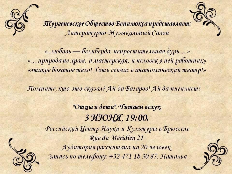 by Natalya Shumilova Тургеневское Общество Бенелюкса представляет : Литературно-Музыкальный Салон.