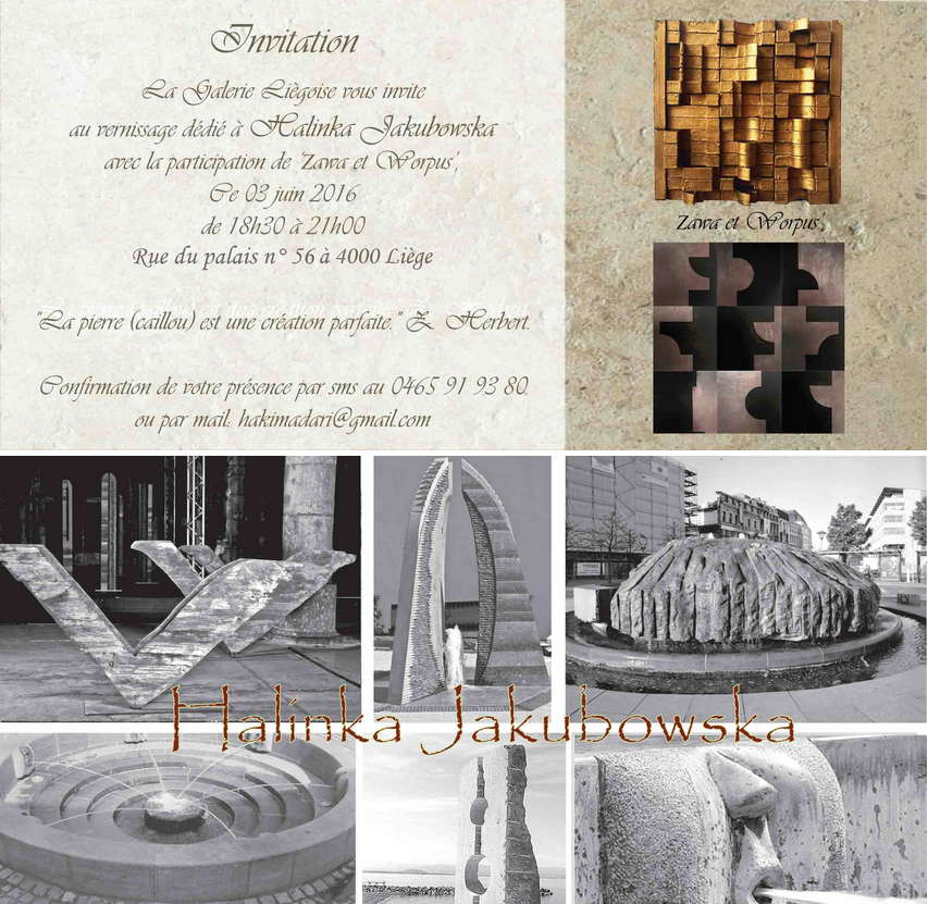 La Galerie Liégeoise vous invite au vernissage dédié à Halinka Jakubowska avec la participation de Zawa et Worpus. Nos premières rencontres se font dans les carrières, et c'est là que naissent les idées de mes sculptures, le plus souvent inspirées par la pierre. C'est elle qui m'inspire dans mon ingérence artistique, parfois importante, mais le plus souvent minimale. Il arrive, que rien ne se passe entre nous ; aucun lien ne se tisse dans l'immédiat. Je la mets donc dans un coin de mon atelier, et elle m'attend là patiemment. Parfois des années après, je la découvre avec un regard nouveau, et soudain tout devient simple et évident, et la nouvelle sculpture est née... Cette pierre, apparemment lourde et froide, est capable d'avoir la chaleur d'un corps et la légèreté des ailes. Halinka Jakubowska