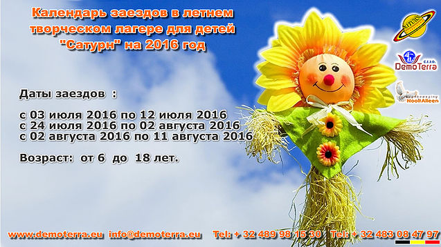 Календарь заездов в летним творческом лагере для детей « Сатурн » на 2016 год.