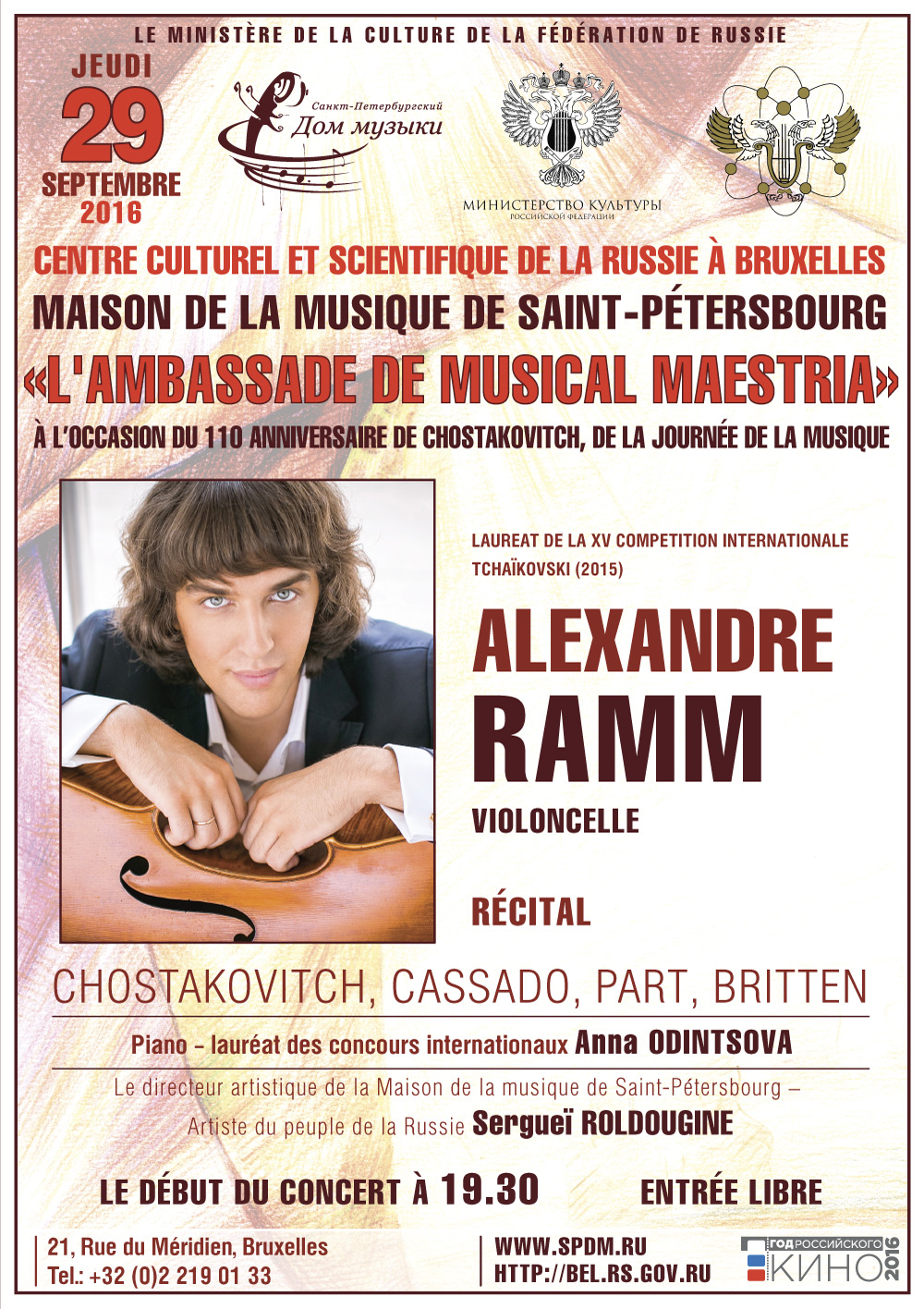- des concerts de « Musique russe » organisé par Armen-Levon Manaseryan, de « Sons cristallins » avec Alexander Melnikov à Bruges et Bruxelles et du 3ème festival  Triomphe de l'Art » à l'Abbaye de Dieleghem accueillant la soliste d'opéra Oksana Volkova ;