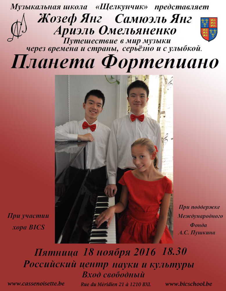 Affiche. CCSRB. Посольство мастерства. Ambassade de musical maestria. Elizaveta Ukrainskaia (piano) et Andrei Reshetnik (piano). FR. 2016-11-03