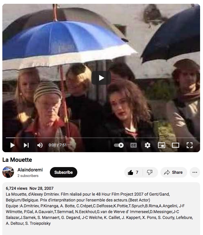 La Mouette, d'Alexey Dmitriev. Film réalisé pour le 48 Hour Film Project 2007 of Gent/Gand, Belgium/Belgique. Prix d'interprétation pour l'ensemble des acteurs.(Best Actor)