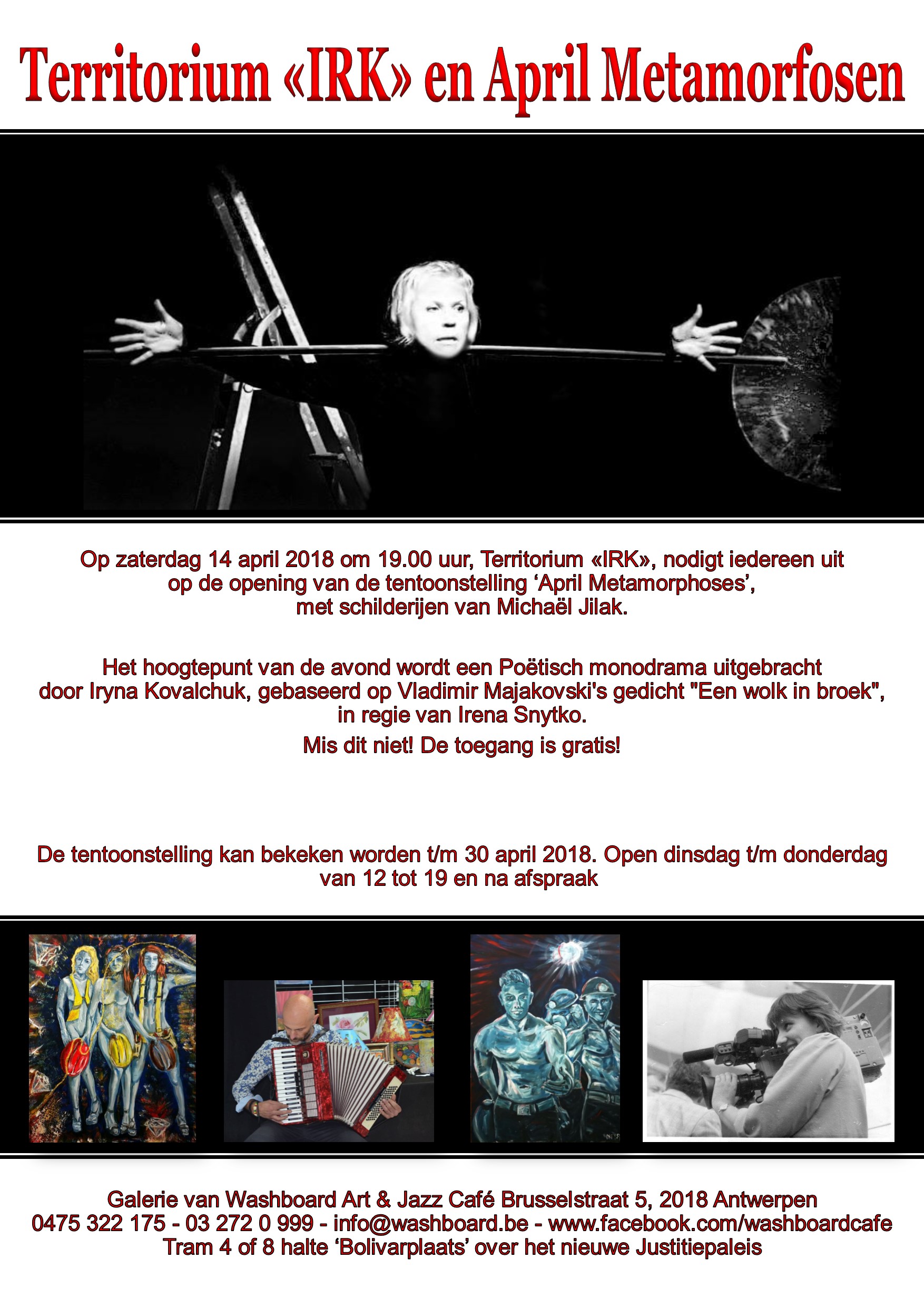 du jeudi 19 avril 2018 au mercredi 13 juin 2018 dinsdag - zaterdag van 12:00 tot 18:00 uur