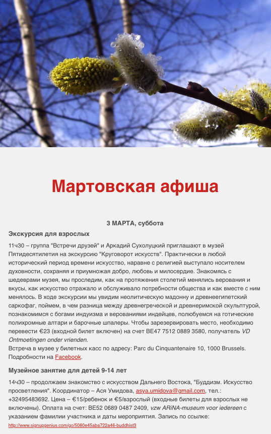 Organisé par Встречи друзей приглашают et ARiNA 3 марта, Брюссель. Круговорот искусств / ЭКСКУРСИИ ДЛЯ ВЗРОСЛЫХ « Встречи друзей » и Аркадий Сухолуцкий приглашает взрослых познакомиться с музеем Пятидесятилетия.