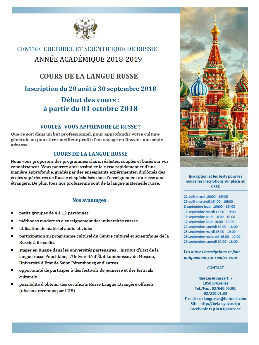 Prospectus. Inscriptions cours de langue russe. Année académique 2018-2019. 2018-08-21