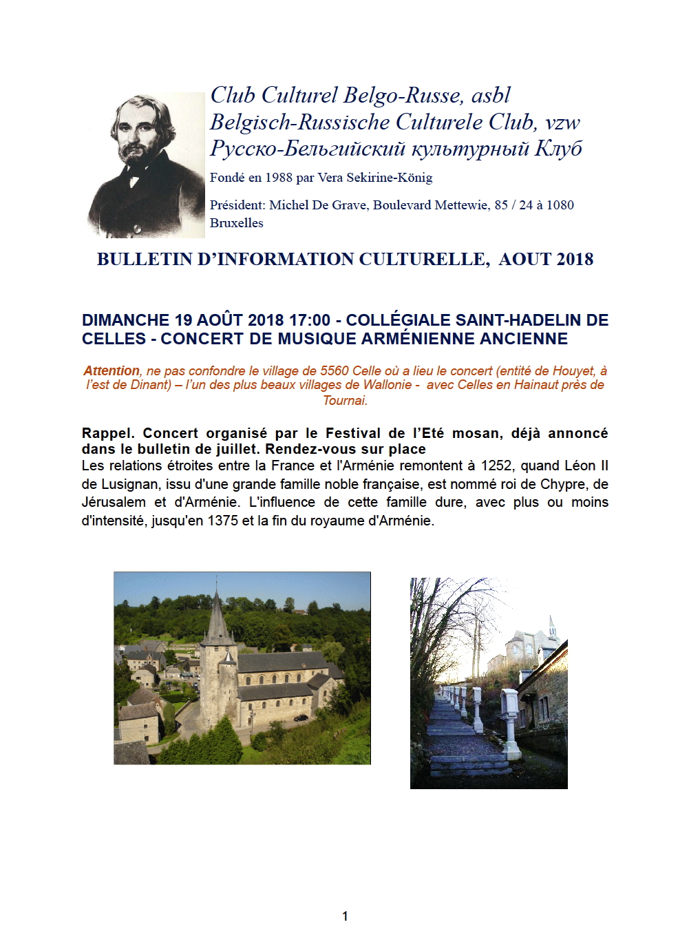 Bulletin CCBR - Club Culturel Belgo-Russe. Août 2018.