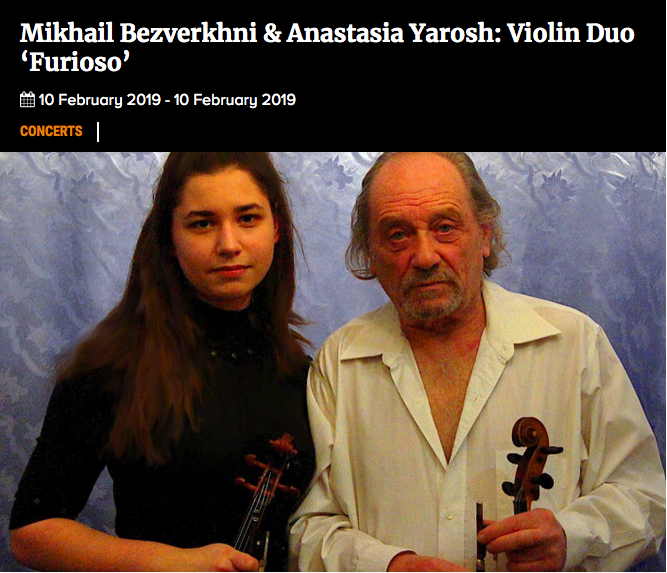8 February at 19.00 => OPEN VIOLIN MASTER CLASS Presented by Alla Vandysheva and Lyubov Kazarnovskaya
