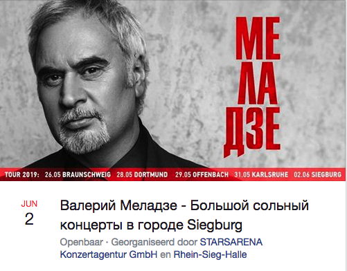 Openbaar · Georganiseerd door STARSARENA Konzertagentur GmbH en Rhein-Sieg-Halle С большими сольными концертами в Германии выступит один из самых востребованных и любимых артистов, чья популярность с каждым годом только возрастает - Валерий Меладзе.
