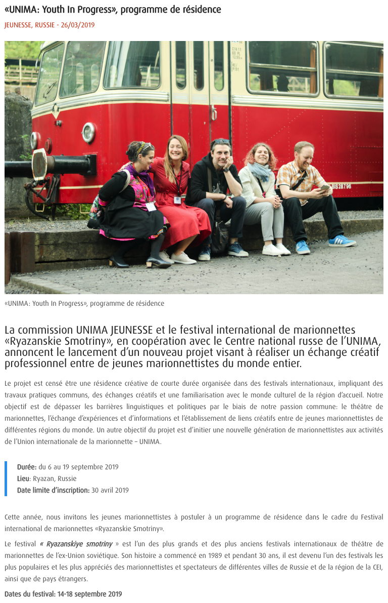 Valérie Felder Chers amis, parce que certains d'entre-vous n'utilisent pas les réseaux sociaux, et cependant m'ont fait confiance, m'ont aidé d'une manière ou d'une autre dans la réalisation de mon documentaire je les en remercient vivement. Voici donc des nouvelles de ce projet : Actuellement je réalise le pré-montage du film, cela prend du temps. Ensuite viendra le montage et le sous-titrage ainsi que la réalisation de l'ambiance musicale. Je prévoie l'avant première de ce film documentaire en Septembre 2019. Je suis ouverte à toute les propositions qui me permettraient d'une manière ou d'une autre de faire connaître mon travail, de le financer (sponsorisation) , de l'inclure dans d'autres projets, de le diffuser et/ou de s'en servir comme outil pour animer un débat sur l'importance de promouvoir, faire connaître, partager la culture russe d'hier à aujourd'hui... C'est dans cette optique que chaque mois la « revue Méthode » m'offre la possibilité de raconter cette belle aventure qui m'a amené à réaliser ce documentaire. En vous rendant sur cette page vous aurez accès à mes articles. Je vous souhaites à tous une bonne lecture. Bien amicalement Valerie Felder
