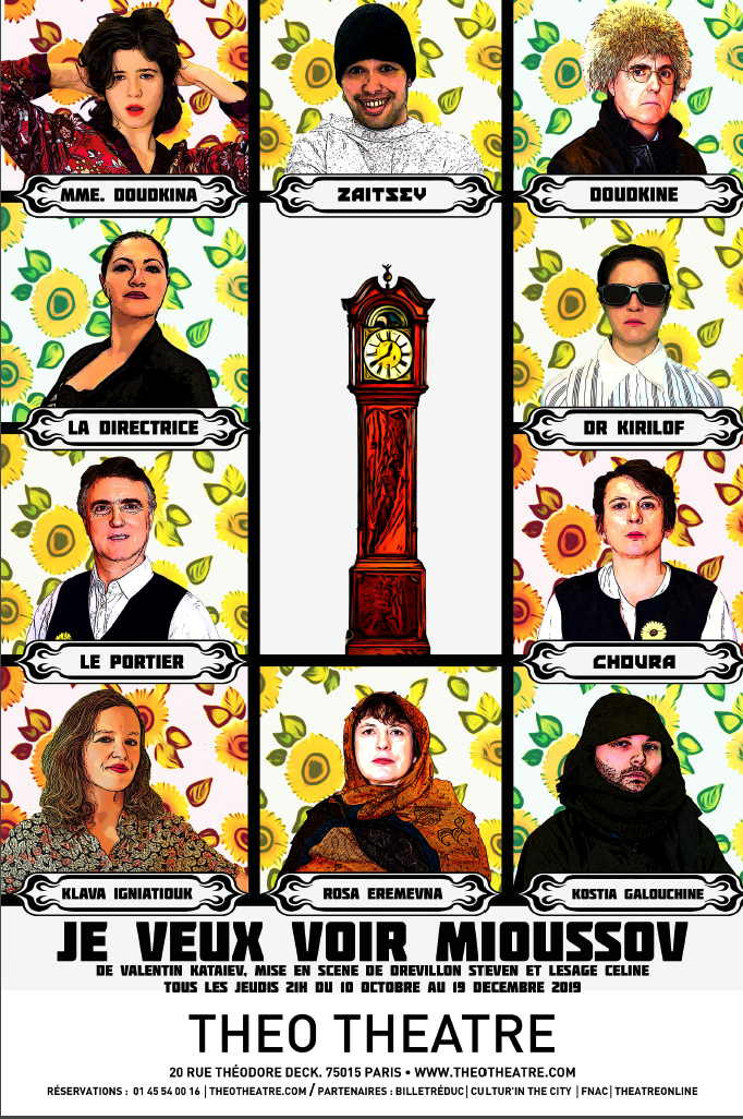 Bonjour, Je m'appelle Steven Drévillon, je suis membre de la troupe AMRI Théâtre. Comme convenue par téléphone, je vous contacte pour vous demander, si possible, de nous aider à communiquer autour de la pièce de théâtre slave que nous jouerons les prochains mois à Paris. La pièce en question est une comédie administrative, absurde, écrite par Valentin Kataïev (1947). Usurpation d'identité pour de la peinture blanche. Et après ça on dit que les fonctionnaires n'aiment pas les histoires. Pour faire signer un bon de commande, en temps et en heure, au camarade Mioussov, Zaïtsev est obligé de mentir sur son identité. C'est pour lui le début des ennuis. Résumé : Zaïtsev, un homme sain d'esprit et de bonne volonté, arrive à la maison de repos "Les Tournesols" et veut voir Mioussov pour une signature. Rien de plus simple au prime abord. Celui-ci, honorable fonctionnaire et habitué des lieux, devrait se reposer tranquillement dans sa chambre selon sa routine dominicale. Malheureusement, rien ne se passe comme prévu. Victime de la complexité administrative, Zaïtsev est obligé de mentir pour entrer dans l'établissement. Il n'imagine pas alors qu'il vient de mettre le pied dans un engrenage de quiproquos dont il ne sortira pas indemne. Pour ne rien arranger, cette manie de vouloir voir Mioussov se propage comme un virus dans la clinique, et celui-ci, terrorisé, se cache d'autant plus. La pelote de laine s'emmêle, les situations ubuesques s'enchaînent et la folie fait gentiment son nid dans la tête de nos personnages. Auteur : Valentin Kataïev Artistes : Céline Lesage, Gilles Rouillet, Maï Sarlabous, Maryanne Kovacs, Pascale Aoudé, Steven Drévillon, Thomas Meurgey, Yann Amri Metteur en scène : Céline Lesage & Steven Drévillon