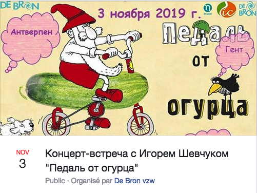 | Calendrier vava.be novembre 2019 |  1-2 → Ballet Carmen (Bruxelles/Namur) 1-3 → Concert chœur de Crimée (Aulnat/Saint-Nectaire/Manglieu) 2 → Бард-клуб « Времена года » (Sossenheim) 3,15,17,24,29 → Tournée Kalinka (Retie/Alt-Hoeselt/Haaltert/Temploux/Herenthout) 3→ Встреча с Игорем Шевчуком (Anvers/Gand/Bruxelles) 4 → Levan Akin dance (Bruxelles) 4-15 → Corps expéditionnaire russe 1916-1920 (Neuilly-sur-Marne) 4-6 → Morphine - Морфий (Paris) 4 → Colloquium Russia and China (Gent) 5 → Concert Daniil Trifonov (Ixelles) 8 → Classique en jazz (Fontainebleau) 8 → Концерт солистов Государственного телевидения и радио России (Saint-Josse) → 9,14-24 Film Andrei Roublev (Ixelles) 13-19 → Cinéma festival. Regards de Russie (Paris) 15 → Conférence FPPR - Ma Russie (Watermael) 15 → Concert M. Martinova & M. Sabbah (Bruxelles)