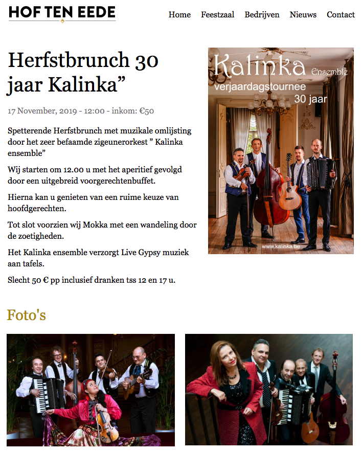 | 15 → Vente Art russe (Paris) 16-18 → Auction russian art (Monaco) 16 → Qualification Euro 2020 : Russie-Belgique (Bruxelles) 19 → Conférence sur Pouchkine(Saint-Josse) 19 → Conférence Retour Russie en Afrique (Jodoigne) 19-24 → Triomphe de l’Art (Bruxelles) 21 → Financing products in EEU (Bruxelles) 22 → Gala Pouchkine 2019 (Genval) 23 → Toon Fret & Veronika Iltchenko (Ixelles) 24 → Swan Lake on the Water! (Laeken) → 30 Vassily Polenov - France terre de création et d’exil (Paris) 27-30 → inner landscapes (Bruxelles) 24/11-8/12 → Anatevka. Fiddler on the roof (Antwerpen/Gent) → 10-19/12 Je veux voir Mioussov (Paris) → 24/12 Minin(g) Charleroi (Marcinelle) 7/10-1/2/2020 → Ballet - Hommage aan Maurice Ravel (Oostende/Longuenesse/Antwerpen/Mons/Gent/Liège)