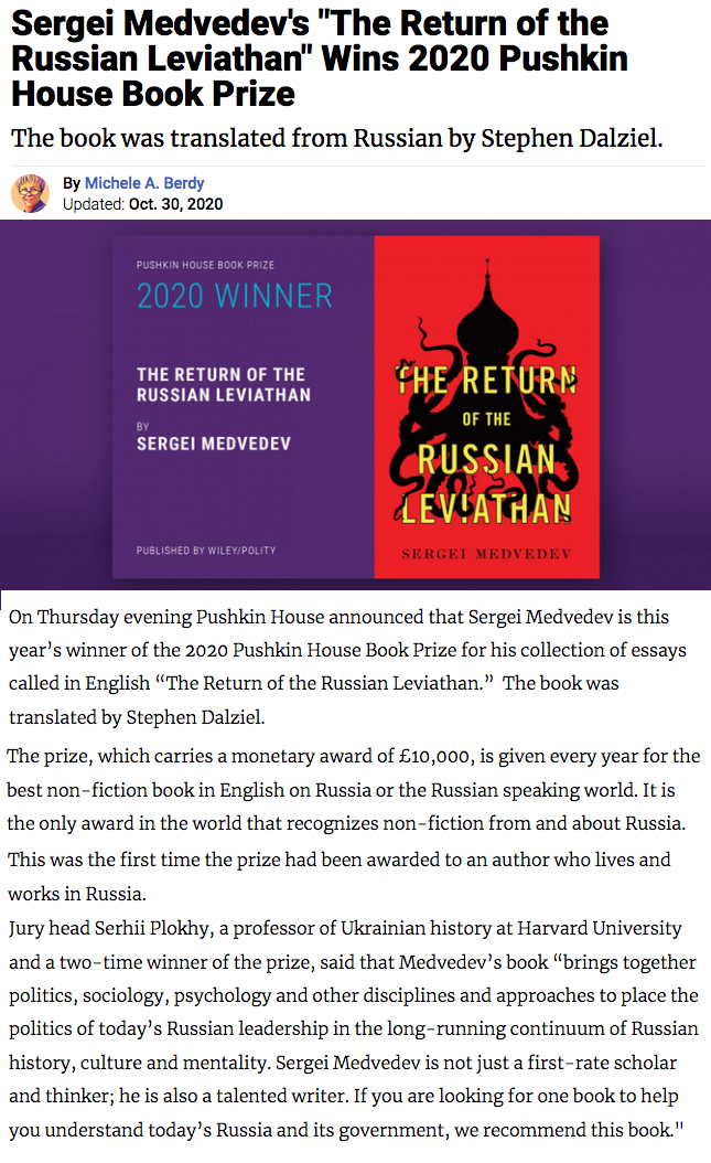 Сайт/Site : https://www.amazon.fr/Return-Russian-Leviathan-Sergei-Medvedev/dp/1509536051