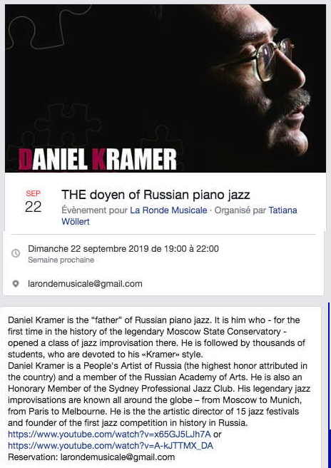 Septembre 2019 => Calendrier d'événements à caractère culturel russe.