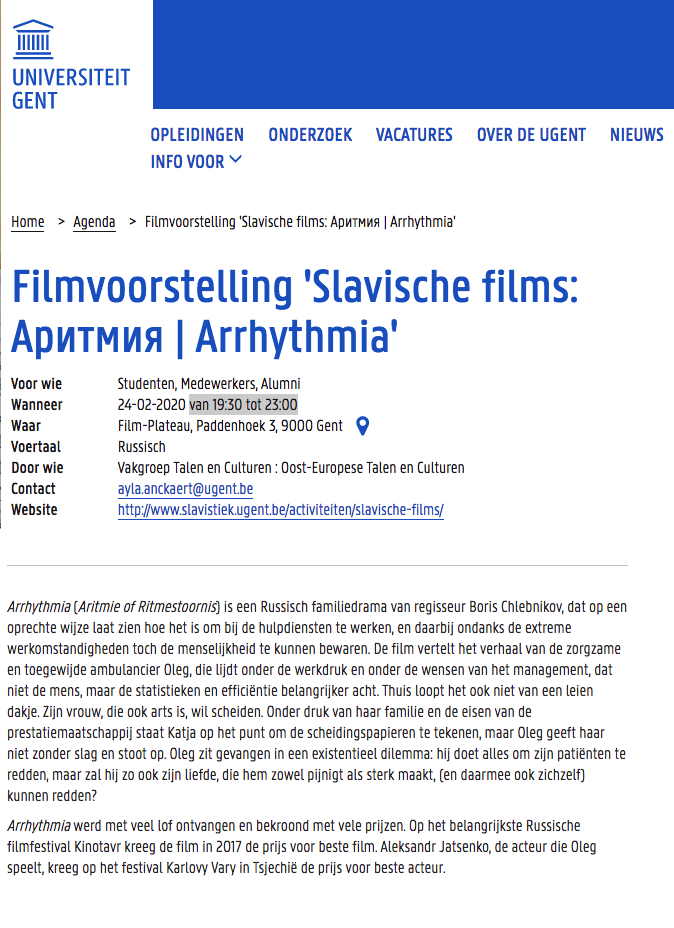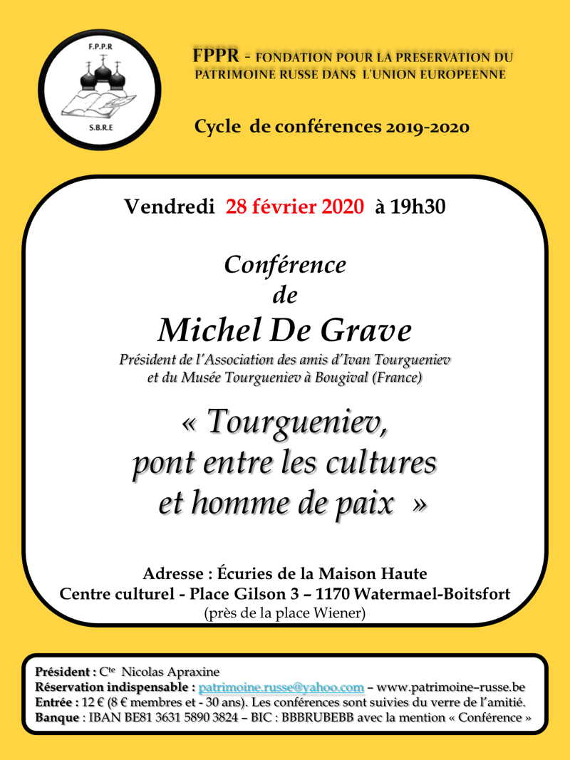 Diffusion de février 2020. Calendrier d'événements à caractère culturel russe.Calendrier d'événements à caractère culturel russe Février 2020 Lien pour visualiser ce courriel dans votre navigateur Mail/RC_Mailing_February_01,_2020.html | Calendrier vava.be février 2019 | Liste des intitulés | Album des affiches/illustrations | Descriptifs détaillés | Nouvelles affiches | Diaporama → 1/2 Ma Vie d'enfant (Bruxelles) 1/2 → Diffusion-courriel Agenda culture russe (Gilly) 1/2 → Гастротур : пиво и не только (Antwerpen) 2/2 → Boekenfeest (WSL) 2/2 → Охотники за древностями (Bruxelles) 2/2 → Разум и чувства (Bruxelles) → 3/2 Pêle-mêle de Noël (Saint-Josse) 4/2 → Soirée Essénine (Paris) 5-25/2 → К 250-летию Ивана Крылова (Saint-Josse) 6/2-21/3 → Expo Boris Mestchersky (Liège) 6/2 → Guerre et paix (Nancy) 7/2 → Pratique du russe parlé (Ixelles) 8-9/2 → Espace russophone : immensité et diversité (Paris) 8/2 → La belle au bois dormant (Liège) 8/2 → Брейгель в черно-белом (Bruxelles) 8/2 → Семинар « Златоуст » (Saint-Josse) 8/2 → Competition Russian language (Saint-Josse) → 9/2 Pressentiment de Cosmos (Paris) 9/2 → Путешествие в Средние века (Bruxelles) 11/2 → La peinture en Russie au XIXe (Saint-Josse) 13-15/2 → Brussels Philharmonic & Boris Giltburg (Ixelles) 13/2 → Cinéma club « Бег » (Saint-Josse) → 15/2 La Russie au siècle des Lumières (Seneffe) 15/2 → Alexander Melnikov, piano (Ixelles)