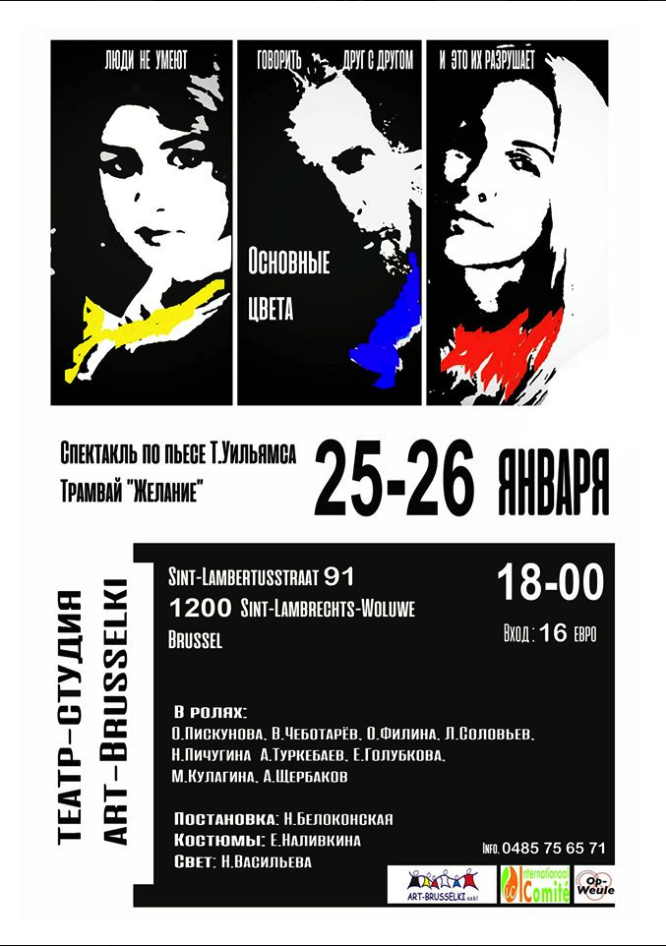 | 12/1 → Concert Noël & Nouvel An (Saint-Josse) 12/1 → Year Party 2020 (Amsterdam) 12/1 → Музыка на завтрак (Uccle) 13/1 → Triomphe de l'Art (Bruxelles) 14/1 → Fate woven out of love (Saint-Josse) 15/1-15/2 → Russie au siècle des Lumières (Seneffe) 15,21-24/1 → Bolero Ravel (Oostende/Mons/Brugge/Liège) 16/1 → L'Etoile (Nancy) 16/1-3/2 → Pêle-mêle de Noël(Saint-Josse) 17/1-1/2 → Ma Vie d'enfant (Bruxelles) 18/1 → LitCafechka. Arbre de Noël (Saint-Josse) 22/1-6/5 → Swan lake (Brugge) 23/1 → Tant que Pouchkine dure en Russie... (Saint-Josse) 24/1 → Classical Music (Ixelles) 24/1 → CCBLR Brussels New Year Reception (Neder-Over-Hembeek) 25/1 → Снежная королева (Uccle) 26/1 → Hommage Pouchkine & opéra russe (Poissy)