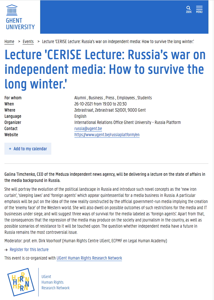 https://hrrn.ugent.be/ https://webappsx.ugent.be/eventManager/events/CERISETimchenko https://www.ugent.be/en/agenda/lezing-cerise-lecture-russia2019s-war-on