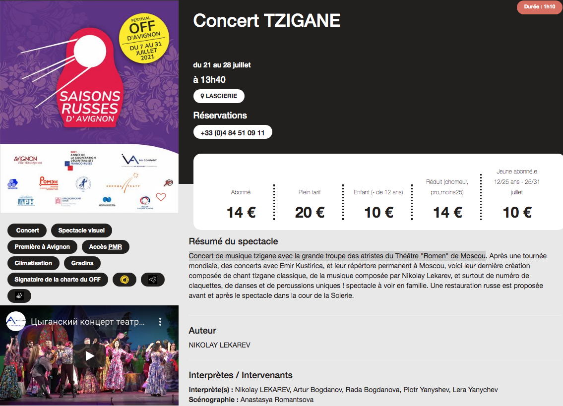 Сайт/Site : https://www.festivaloffavignon.com/programme/2021/concert-tzigane-s28383/