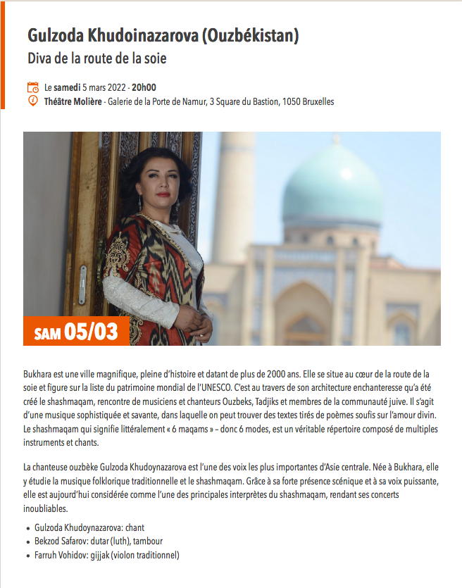 Сайт/Site : http://muziekpublique.be/concerts/20220305-gulzoda-khudoinazarova-uzbekistan/
