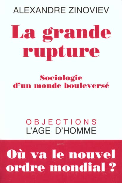 Alexandre Zinoviev La grande rupture, aux Éditions L'Age d'Homme. |