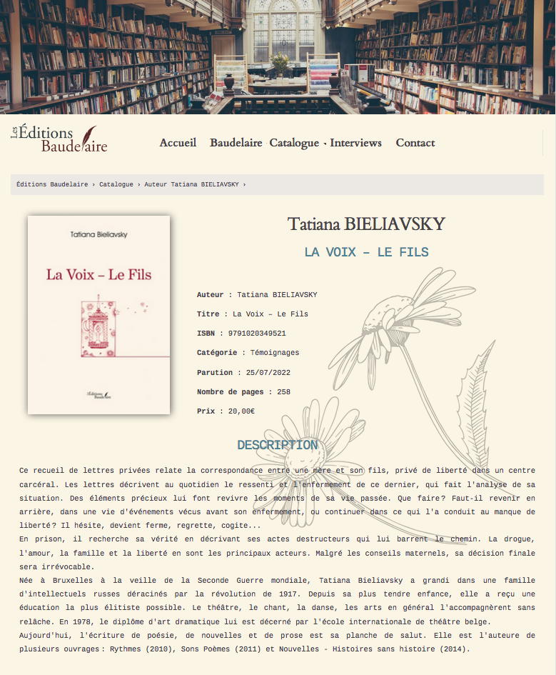 • https://www.editions-baudelaire.com/auteur/tatiana-bieliavsky/la-voix-le-fils • La Voix – Le Fils — Dossier de presse page 2