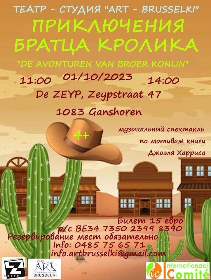 Резервирование мест обязательно. Стоимость билета независимо от возраста 15 евро. Info : info.artbrusselki at gmail.com1083 Bruxelles (Ganshoren); 0485 75 65 71 Р/с: BE34 7350 2399 8390 a.s.b.l. ART BRUSSELKI !!!В комментариях указать количество детей и время (11:00 или 14:00)