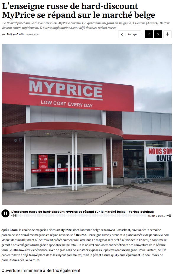 Сайт/Site : https://www.forbes.be/fr/lenseigne-russe-de-hard-discount-myprice-se-repand-sur-le-marche-belge/