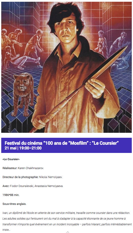 Сайт/Site : https://rushouse.be/fr/event/festival-du-cinema-100-ans-de-mosfilm-le-coursier/