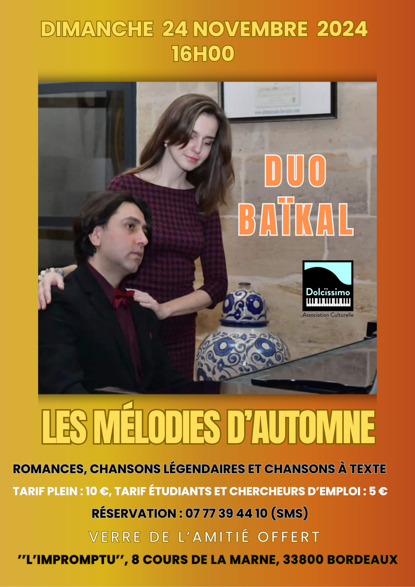 |  - 2024-11-22.jpg) | 22 novembre 2024 19:30–21:00 Concert Est-Ouest : « Un Voyage Musical » |