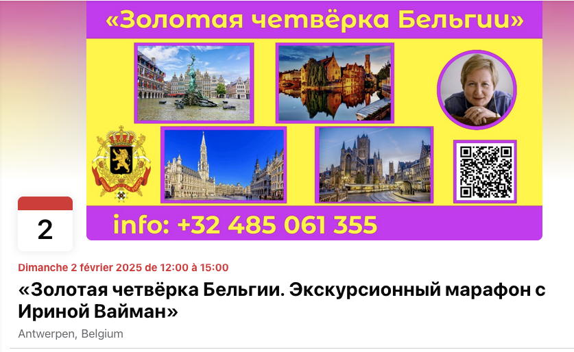 Экскурсионный марафон с Ириной Вайман Творческое объединение Culture Connection vzw представляет: