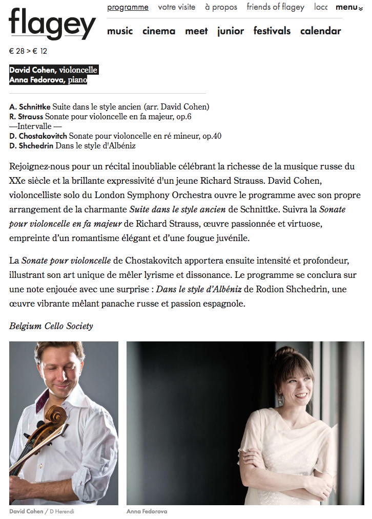 Flagey : David Cohen, violoncelle - Anna Fedorova, piano. |
