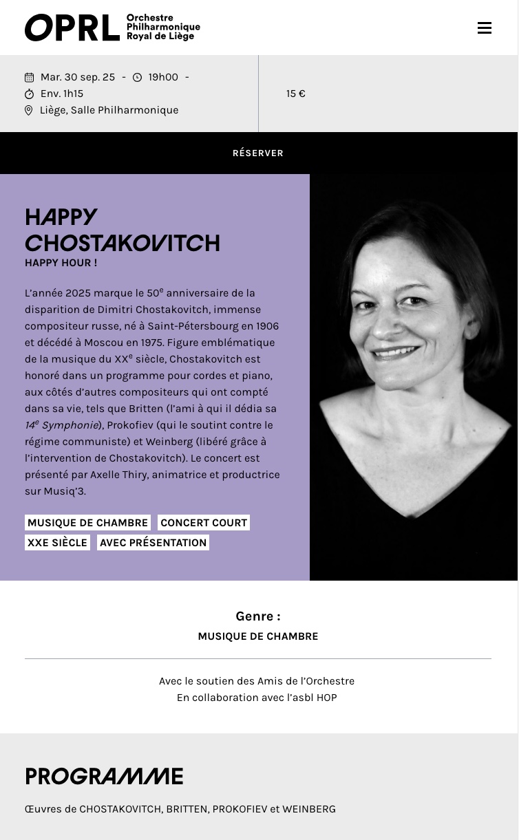 Сайт/Site : https://www.oprl.be/fr/concerts/happy-chostakovitch