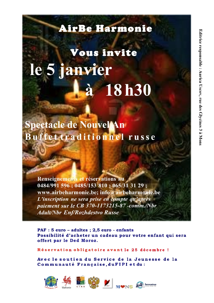 Ainsi certains événements en cours restent d'actualité et le samedi 12 prochain l'on pourra quitter définitivement 2012 en assistant au spectacle pour enfants du théâtre-studio « Most »... et ensuite pourquoi ne pas réveilloner à la Basilique de Koekelberg en réponse à l'invitation de Tatiana ?