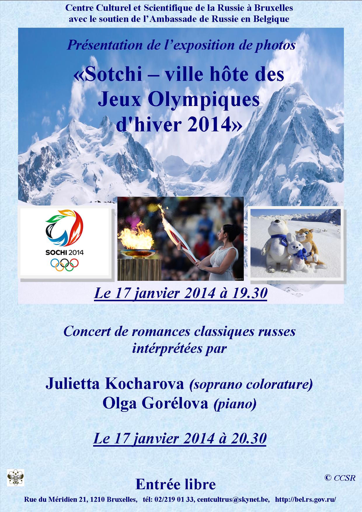 le vendredi 31 janvier 2014 Презентация выставки - 19,00 (Концерт - 19,30) / Ouverture de l'exposition - 19.00 (Concert - 19.30)