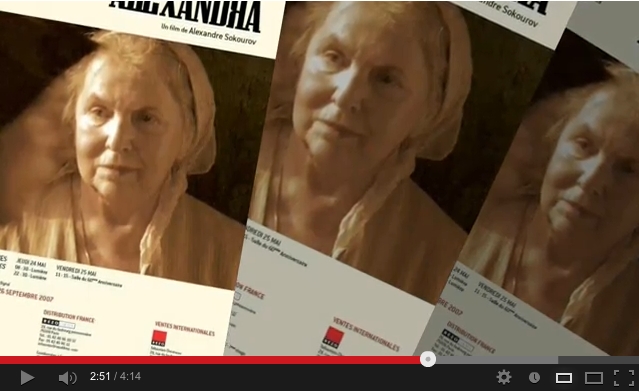 Alexandra, une grand-mère – incarnée par Galina Vishnevskaya, gloire de l’opéra russe et épouse du célèbre violoncelliste Mstislav Rostropovitch – affronte un long voyage, la chaleur et les dangers de la guerre en Tchétchénie, pour aller embrasser son petit-fils, capitaine dans l’armée russe, qu’elle n’a pas vu depuis sept ans. Bande annonce : youtube.com/watch?v=evrNtril88Y